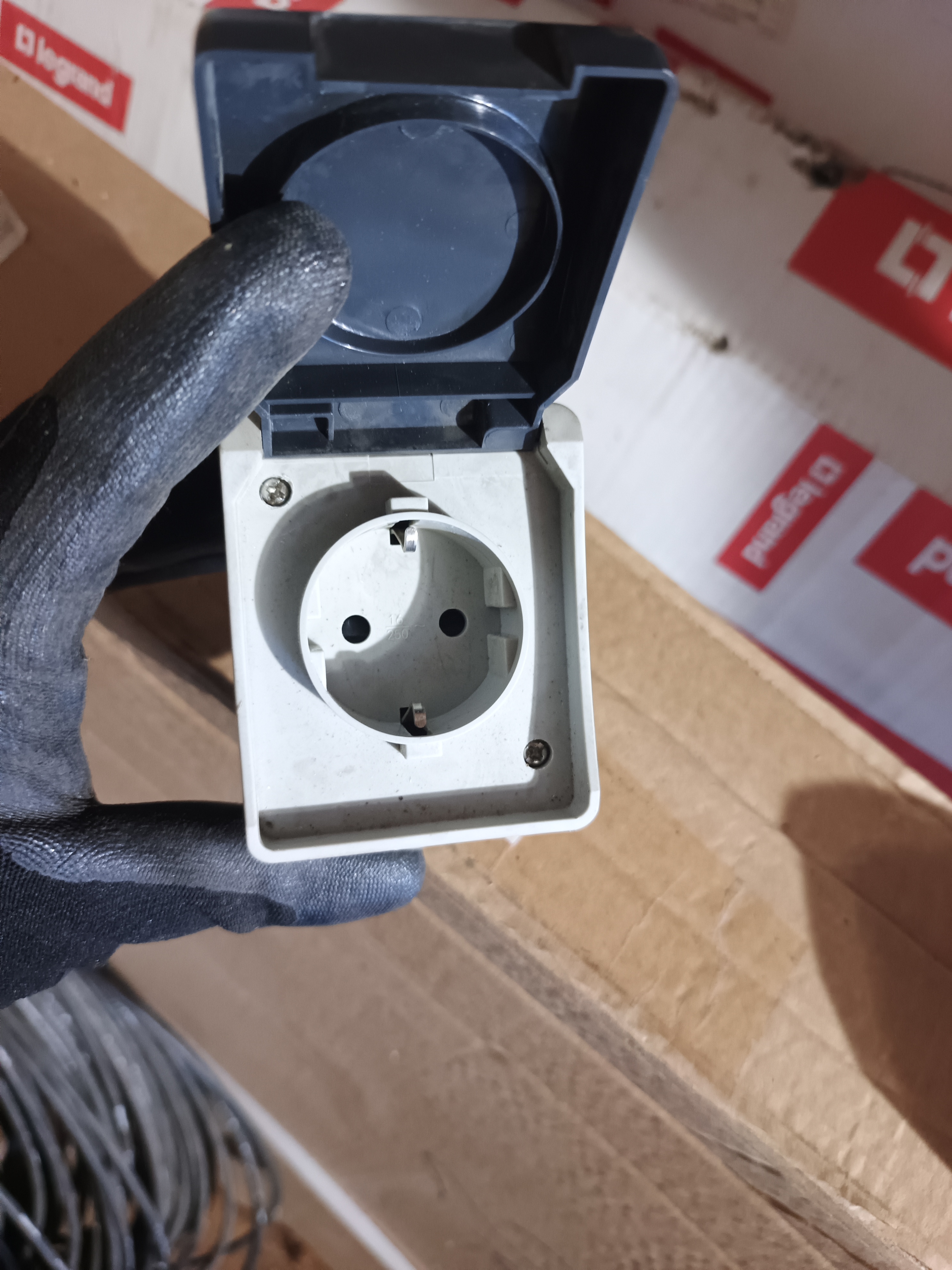 Розетка 1-м ОП Этюд 16А с заземл., шторками, крышкой (РА16-044В)